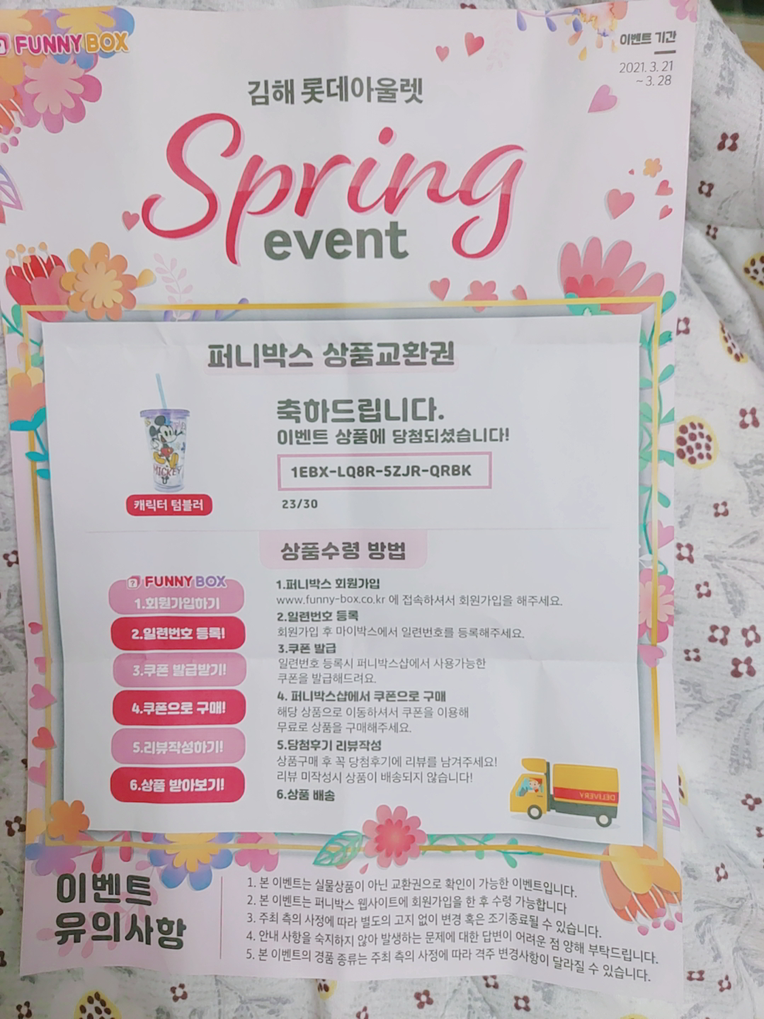김해아울렛에서 당첨됬슥니다ㅋ 페이지 정보 본문 텀블러당첨! 근데 쿠폴적용버튼이없네요ㅡㅡ 어떻게선물받지요? 이전글핑크 펭수파우치! 21.03.29 다음글드론 당첨^^* 21.03.28 목록 댓글 0 댓글목록 등록된 댓글이 없습니다.