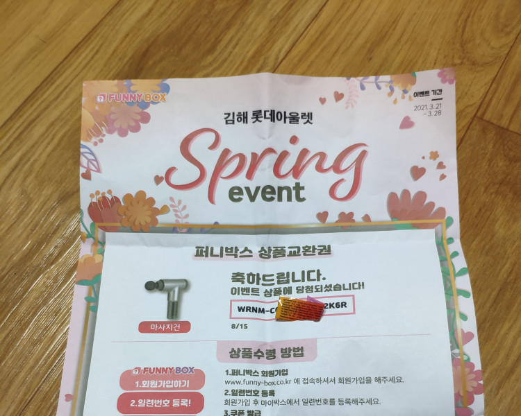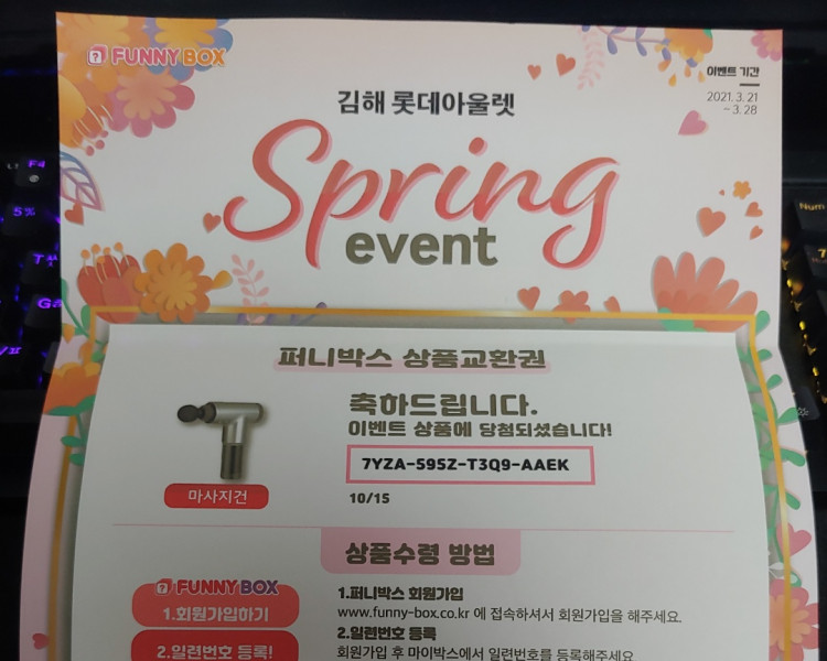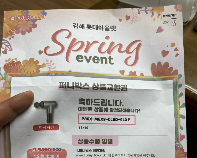 지나가다 재미삼아 해봤는데 마사지건이 당첨되었습니다. 오우 이런 횡재가...