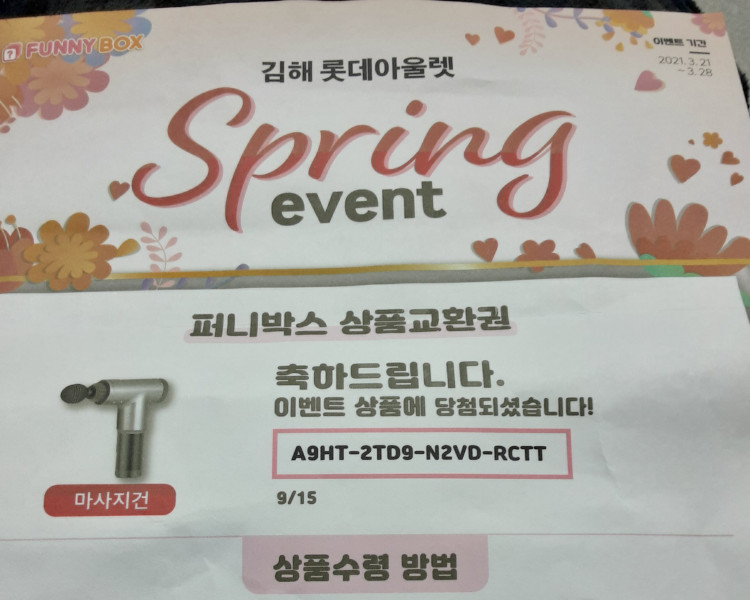 심심해서 롯데 아울렛에서 2개를 뽑아봤는데 2개다 마사지건을 뽑았네요! 이게 정말로 당첨된지ㅓ아직도 의아하네요... 감사..