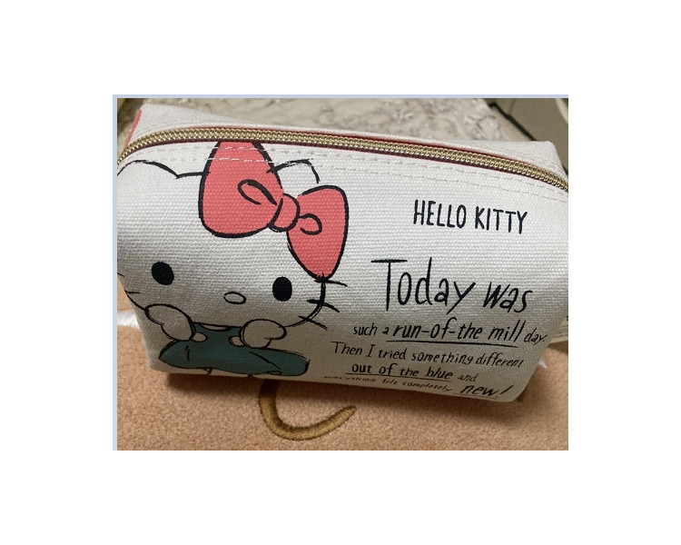키티파우치가 나왔어여 반듯한 사각모양이 아니고 둥근사각모양이라 많이 들어갈 것 같아여 그래서 저는 화장품 파우치로 쓰려구..