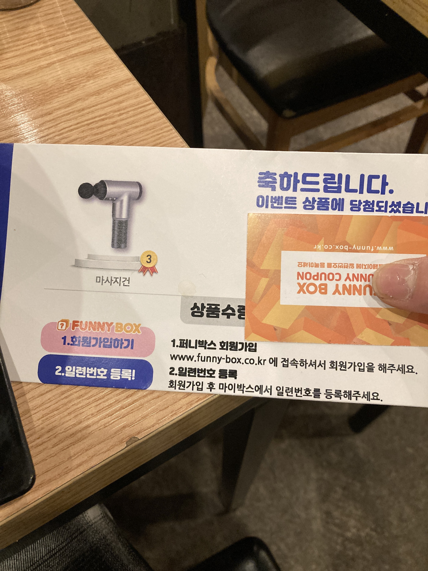 서울랜드에서 호기심에 했는데 마시지건 당첨입니다