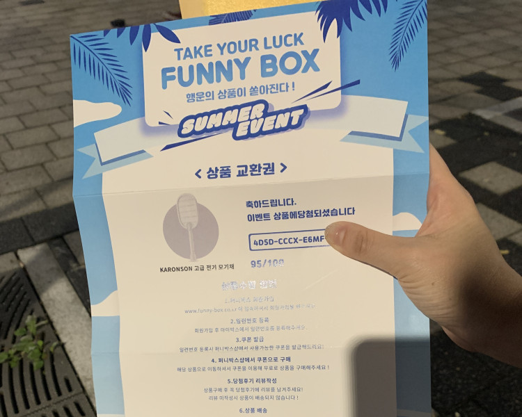 회사앞에 랜덤박스 ~ 항상 괜찮은 상품만 나와서 종종이용하는데 오늘은 갑자기 상품권같은 봉투하나가 보임.. 열어보니..