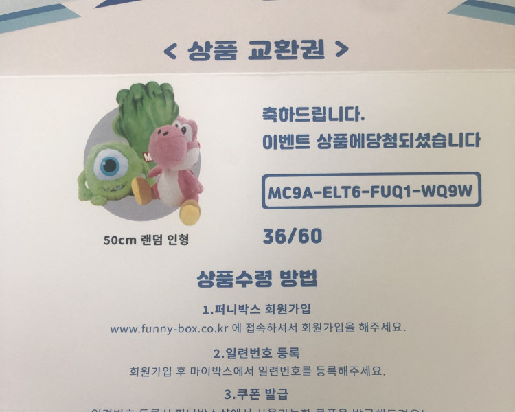 재미삼아 한번 두번 종종 하던건데 정말 당첨이 되었네요. 정말 당첨될줄 몰랐는데 앞으로도 종종 할거같아요^^ 다음에는..