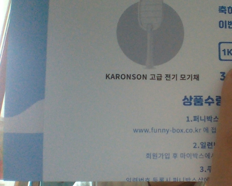이런거는 처음 당첨되 보네요 ㅎㅎ 밥먹다가 재미로 한번 해봤는데 조금아쉽지만...전기 모기채.... 잘쓰겠습니다!!