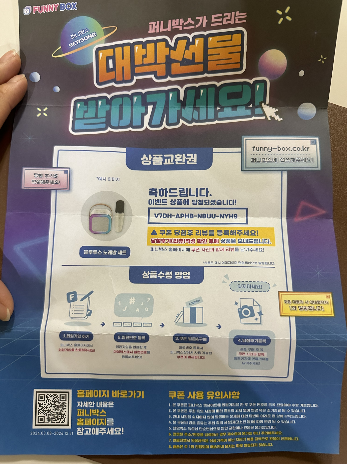 블루투 노래방 세트 당첨 페이지 정보 본문 퍼니박스에 블루투스 노래방 세트 당첨됐습니다~~^^ 15000원 마일리지 결재해야 하는 걸까요? 이전글행운핑 당첨 후기 24.05.08 다음글당첨^^ 24.05.07 목록 댓글 0 댓글목록 등록된 댓글이 없습니다.