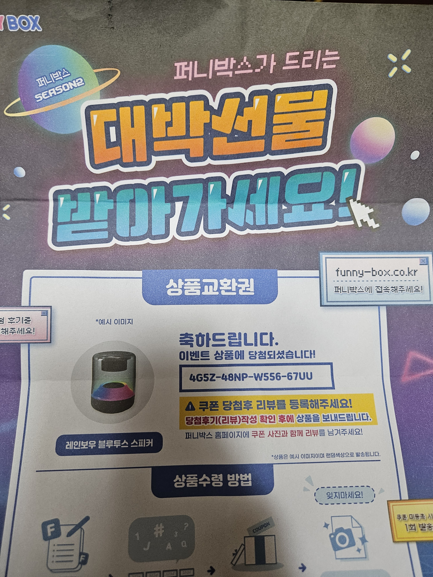 퍼니박스 당첨후기 페이지 정보 본문 오늘 학원 체험학습가서 기다릴겸 뽑았는데 스피커가 나오다니 너무 기부니가 쪼아요!! 이전글당첨후기 24.05.12 다음글퍼니박스 당첨 인증 24.05.11 목록 댓글 0 댓글목록 등록된 댓글이 없습니다.