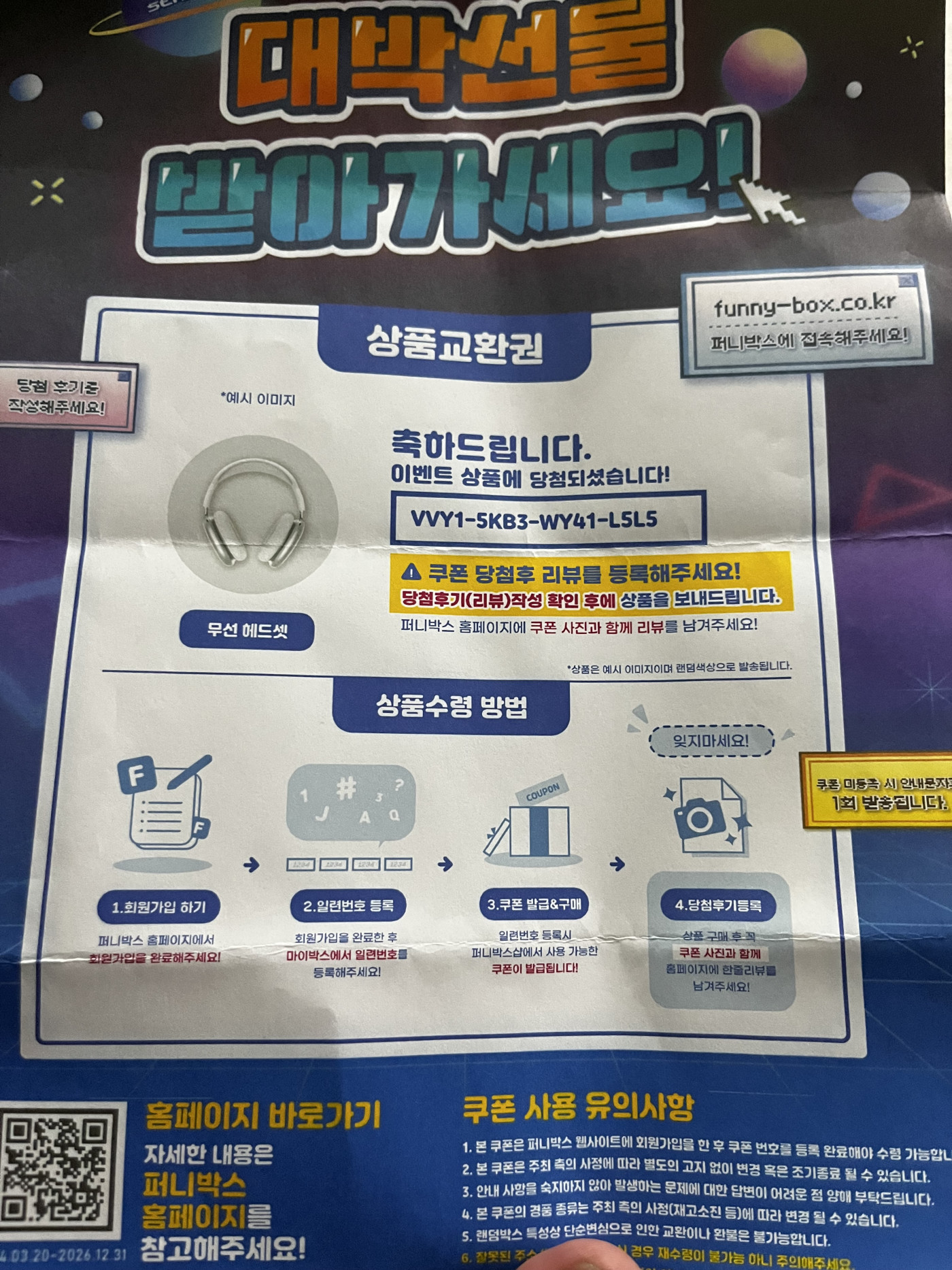 무선헤드폰이요! 페이지 정보 본문 퍼니박스 당첨 인증 및 후기 게시판입니다. 당첨 쿠폰을 사진과 함께 멋진 리뷰를 남겨주세요~ 무선헤드폰 이요~! 이전글이어폰 당첨 24.05.13 다음글당첨후기 24.05.12 목록 댓글 0 댓글목록 등록된 댓글이 없습니다.