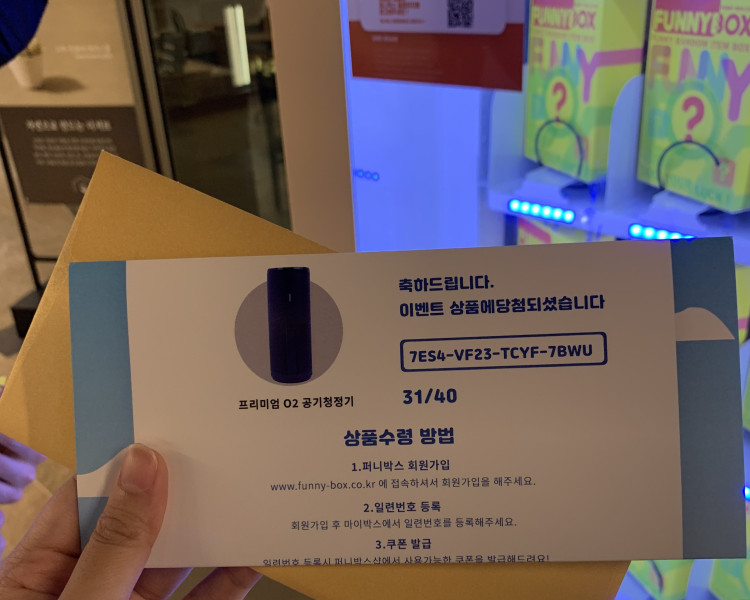 인사동가서 느낌이 오는 박스가 2개 있길래 뽑았는데 공기청정기 당첨됐어요 오호호