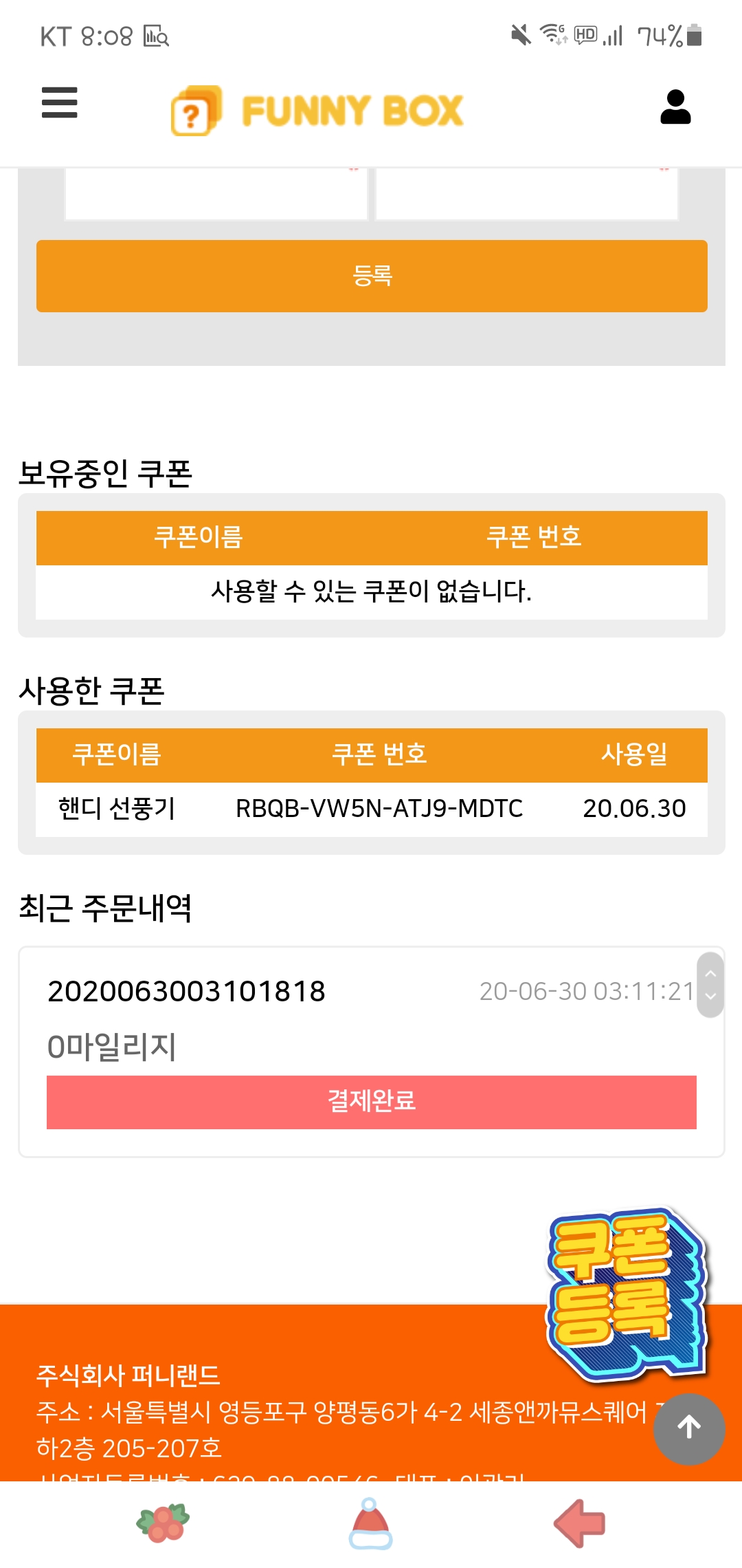 이벤트 참여하여 쿠폰등록 했는데 당첨되서 너무 좋구요
