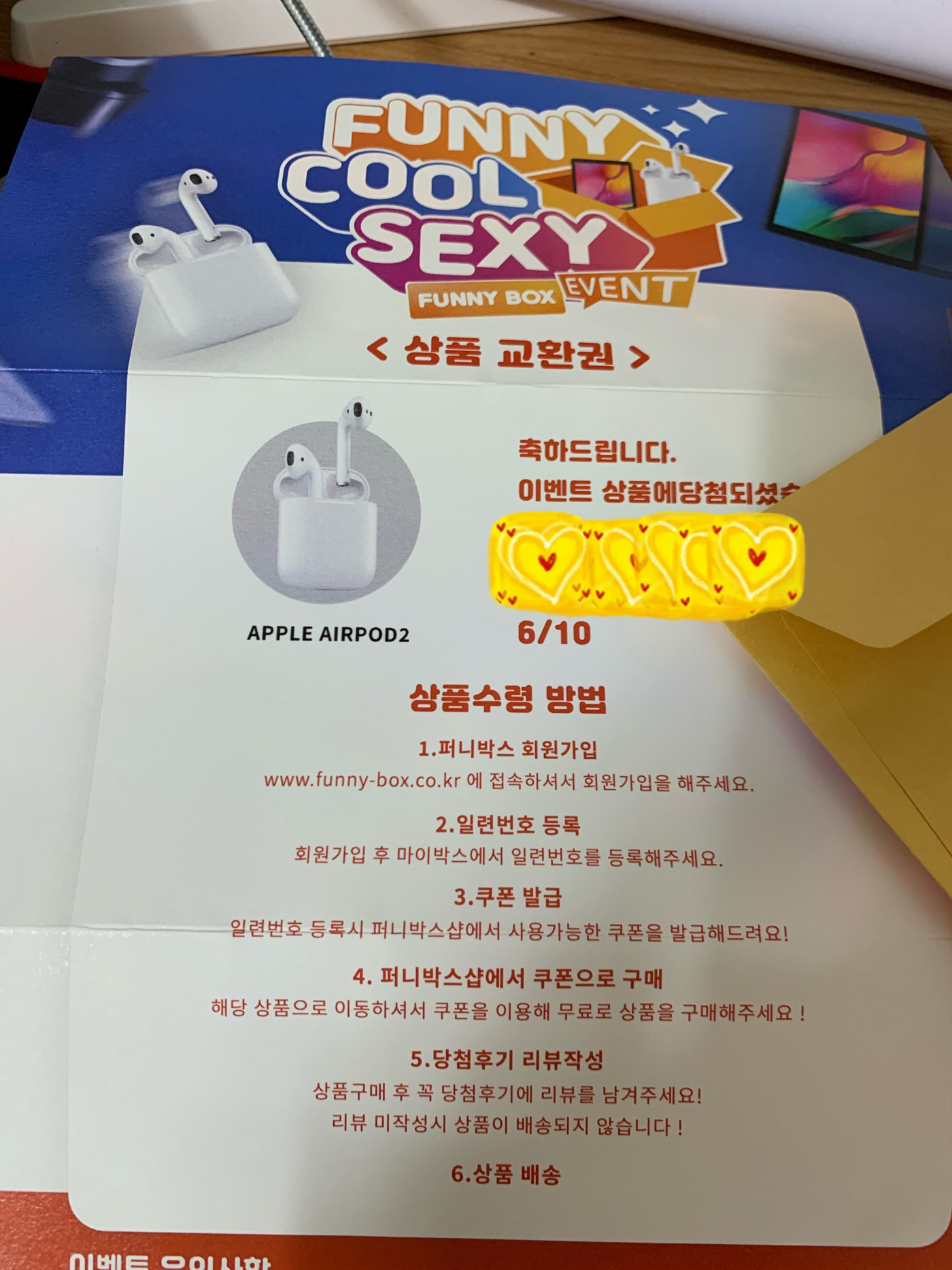 정말 기대도안하고 해봤는데 에어팟이 당첨될줄은...