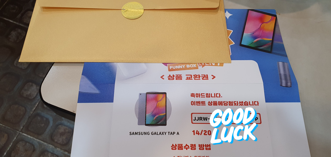 봉투를 열어보니 맙소사!! 갤탭에 당첨됐다는겁니다. 그것도 2019년 신형 10.1로요