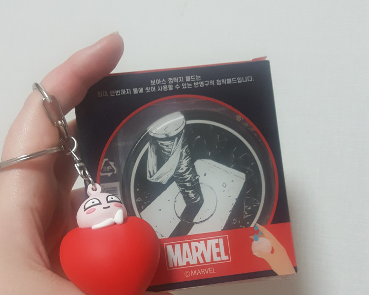 언니랑 간만에 나와서 발견한 FUNNY BOX 뜯어보고 만족해서 실실거리다가 가방에 어피치 달았어요ㅎㅎ 껌딱지 패드는 소장..