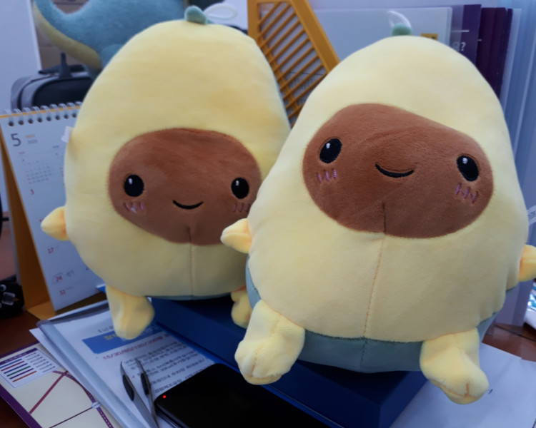 쿠폰 긁어서 아보카드 인형 당첨됐네요 감촉이 보들보들해서 끌어앉고있기 좋네요 여태 12번정도 랜덤박스해봤는데 포인투말고 먼..