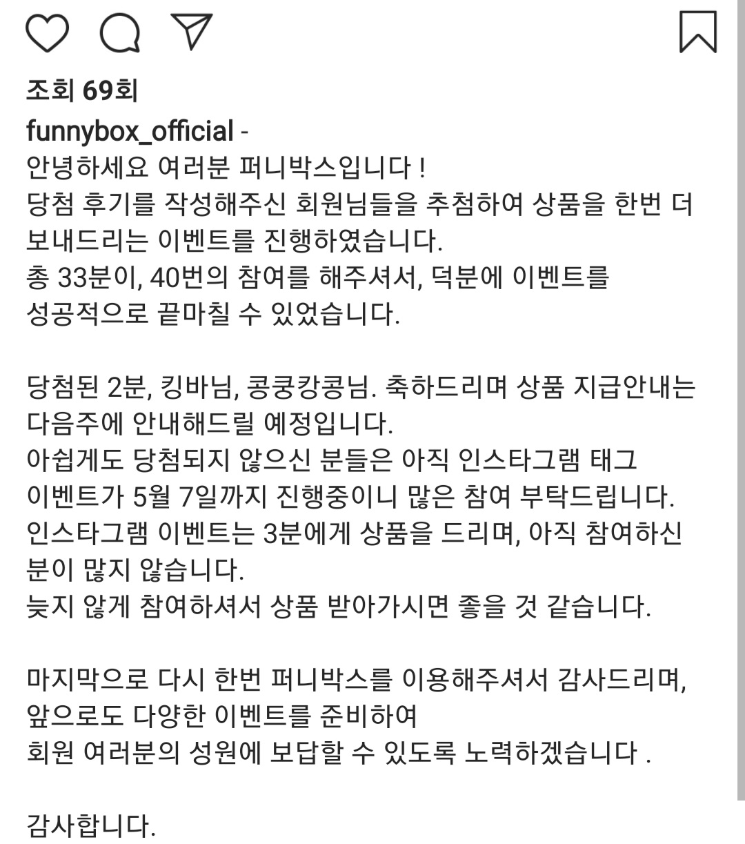 이벤트 당첨~ 페이지 정보 본문 정말 당첨이 될줄 몰랐는데 당첨이 되니 기분이 좋네용 ㅎㅎㅎ 이전글야호 어피치!! 20.05.13 다음글마일리지 1500점만에 20.05.10 목록 댓글 0 댓글목록 등록된 댓글이 없습니다.