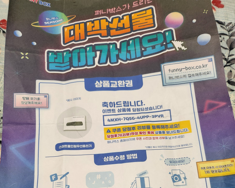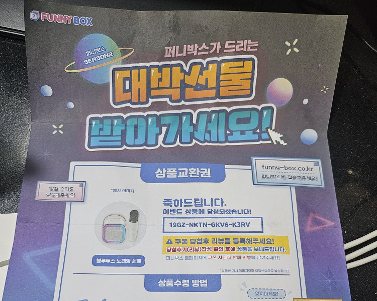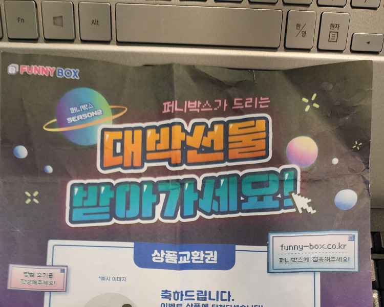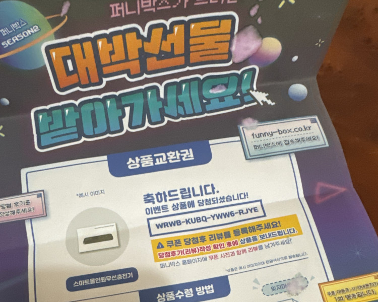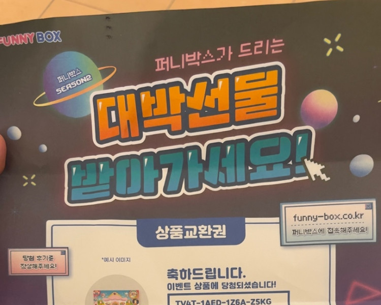 퍼니박스 당첨 인증 및 후기 게시판입니다. 당첨 쿠폰을 사진과 함께 멋진 리뷰를 남겨주세요~ 그냥 했는데 갑자기..