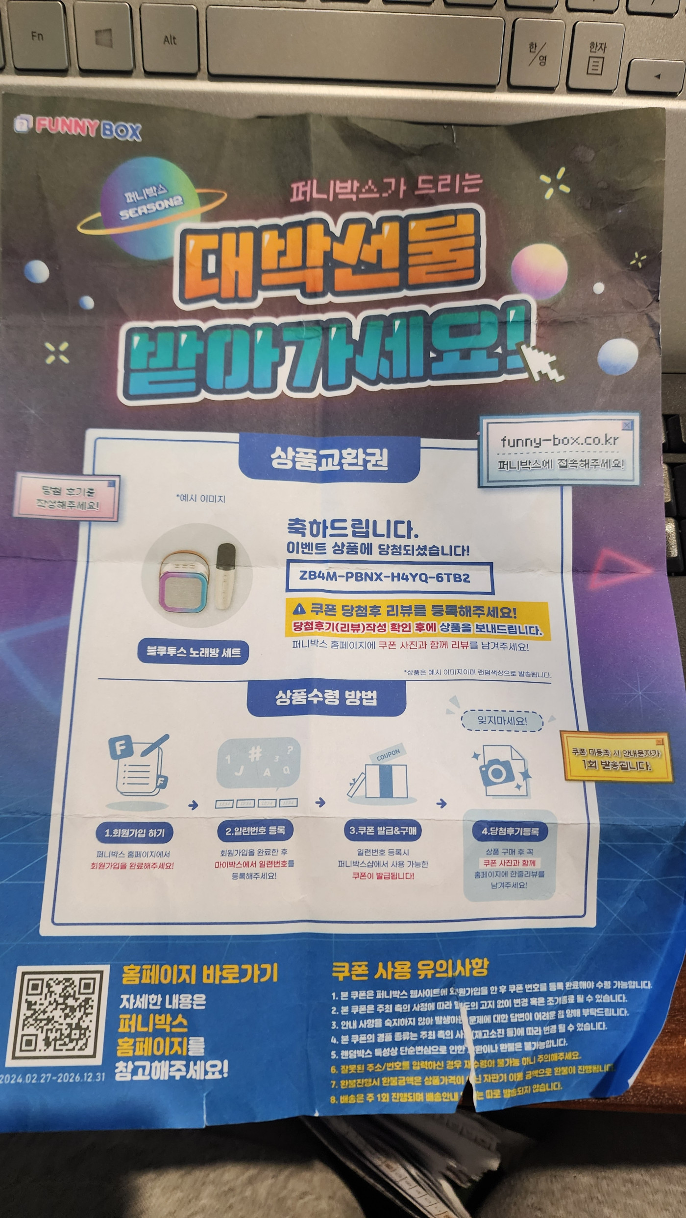 쿠폰인증 페이지 정보 본문 퍼니박스 당첨되어서 쿠폰 인증합니다. 이전글우와당첨됫어요! 24.04.25 다음글퍼니박스 당첨~~~ 24.04.25 목록 댓글 0 댓글목록 등록된 댓글이 없습니다.