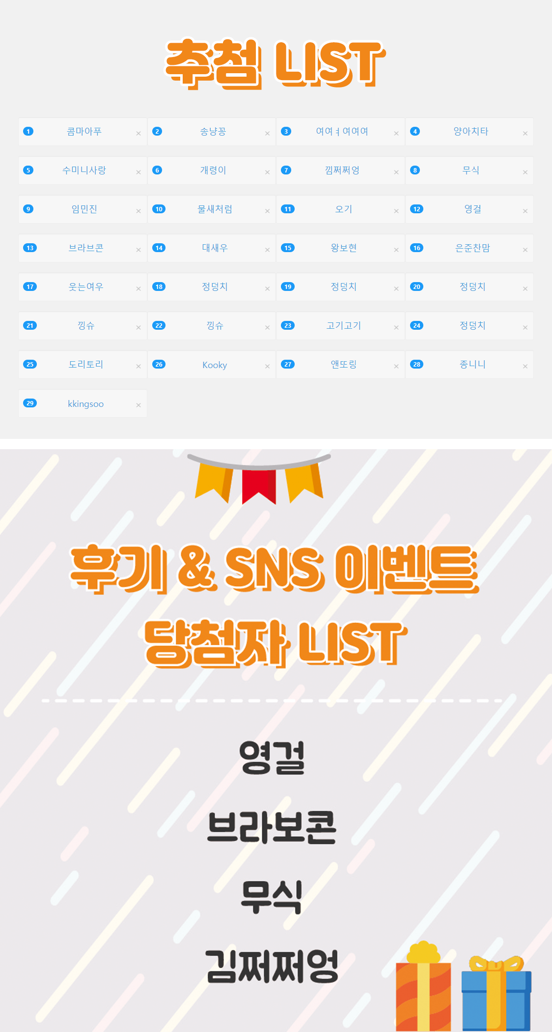 이번 이벤트는 색다르게 웹사이트 후기 작성자와 SNS 인증 참여자들을 추합하여 총 4분을 뽑았습니다!